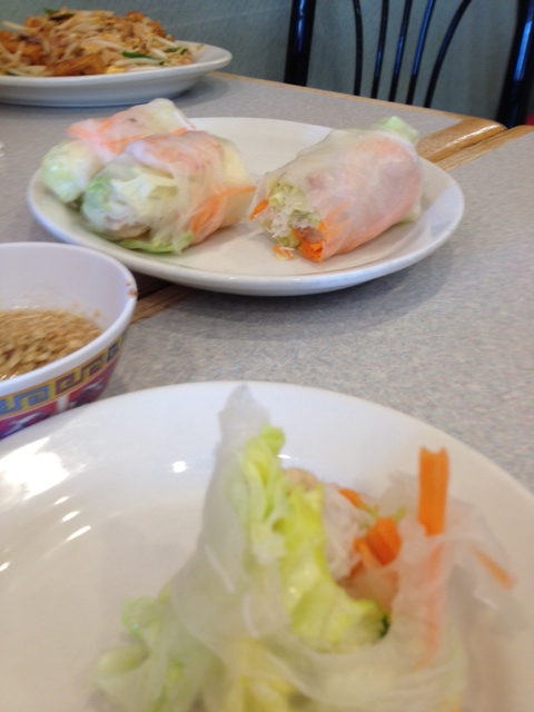 I tried a few items while I was there. The first, was a shrimp and chicken spring roll with a peanut sauce. It was very good and I liked the combination with both meats and the sauce. The sauce was not spicy and I could tell that the peanuts were just crushed. Plus, they were huge! See below.