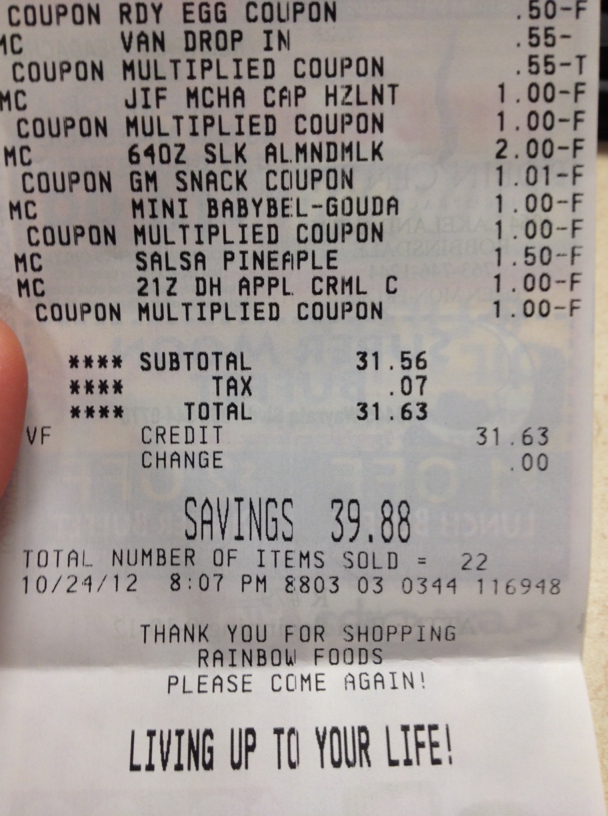 Okay what does unlimited double coupons mean? It means that Rainbow will double unlimited coupons. There are a bunch of rules to this but it still means saving a bunch of money.