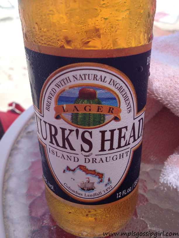 I choose Turks Head Lager a local beer made on the island and white wine. The Turks Head was $41.99 for a case and the wine was comparable to what it costs me in Minneapolis. It felt amazing to be able to sit in a lounge chair, drink a beer, and read a book.