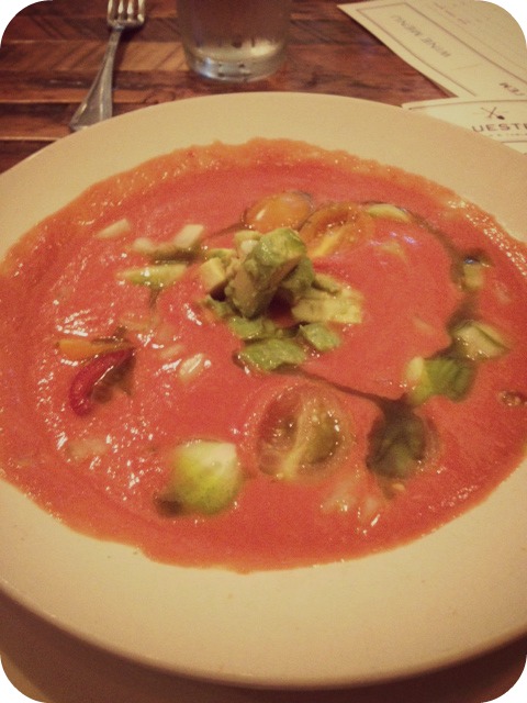 I always suggest eating off of the specials menu. When I went to visit it was a very hot day and the tomato gazpacho that was on the specials menu was perfect. Gazpacho is a cold soup and although it is very different from eating warm soup, if done right it is wonderful on a warm day and still has all the flavor that you need.