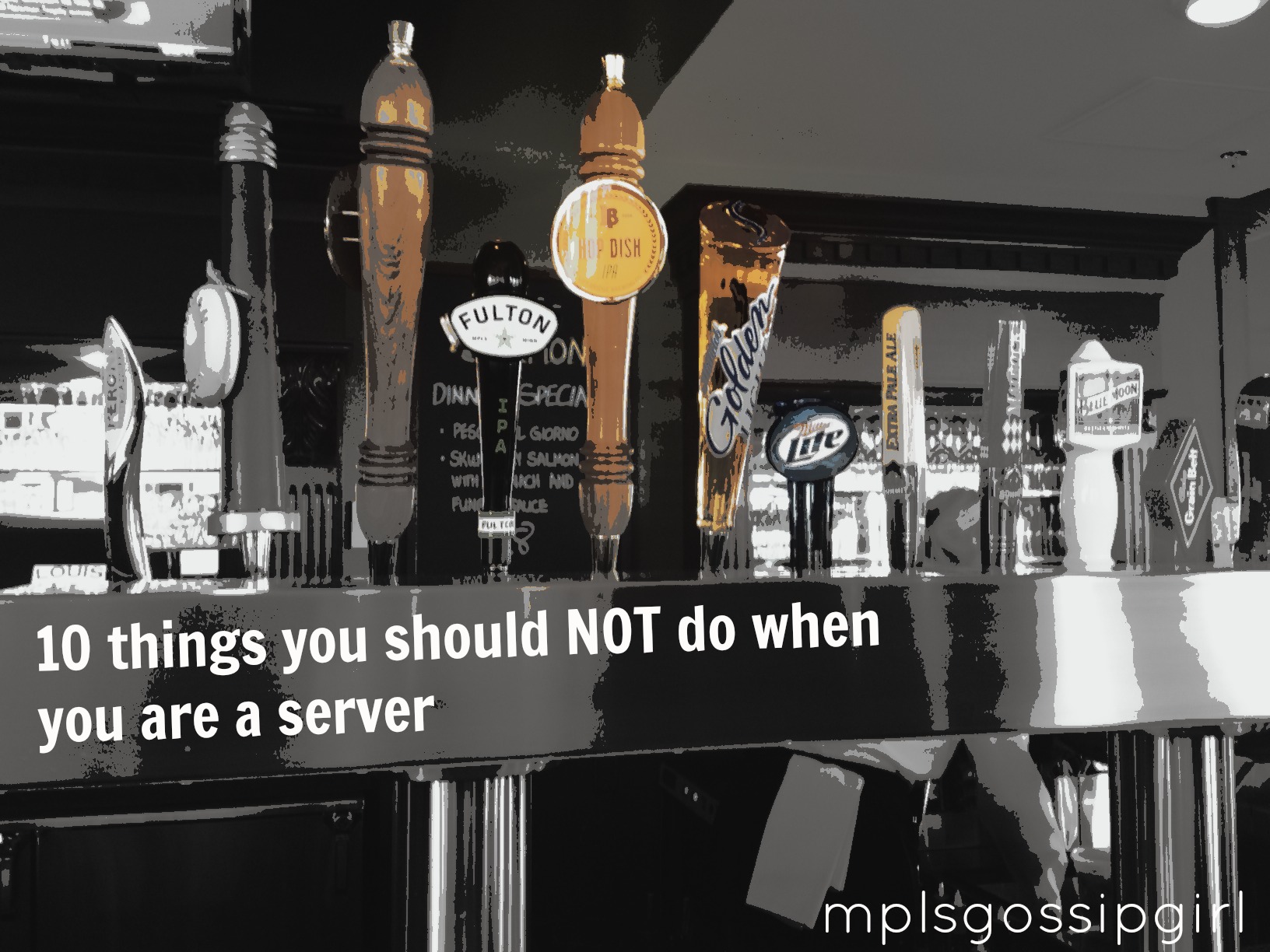 Firstly, I understand how horrible being a server can be. Having to deal with both rude customers and the kitchen can stress even the most calm person out. Most servers that I have encountered in Minneapolis and surrounding areas get most everything right. They would never come close to committing any of the food crimes that I witnessed on this occasion.