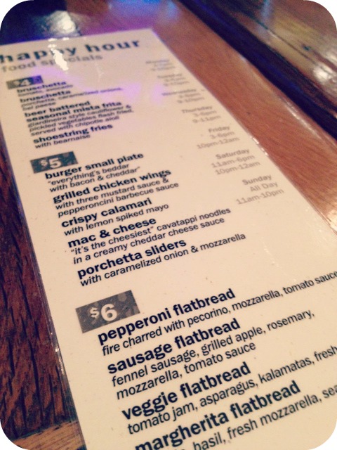 They also have a happy hour from Monday- Friday from 3-5 P.M. Also, a late night happy hour 10- close every night of the week. Although the happy hour menu is fairly small, they have mussels and the turkey burger for only 6 dollars each.