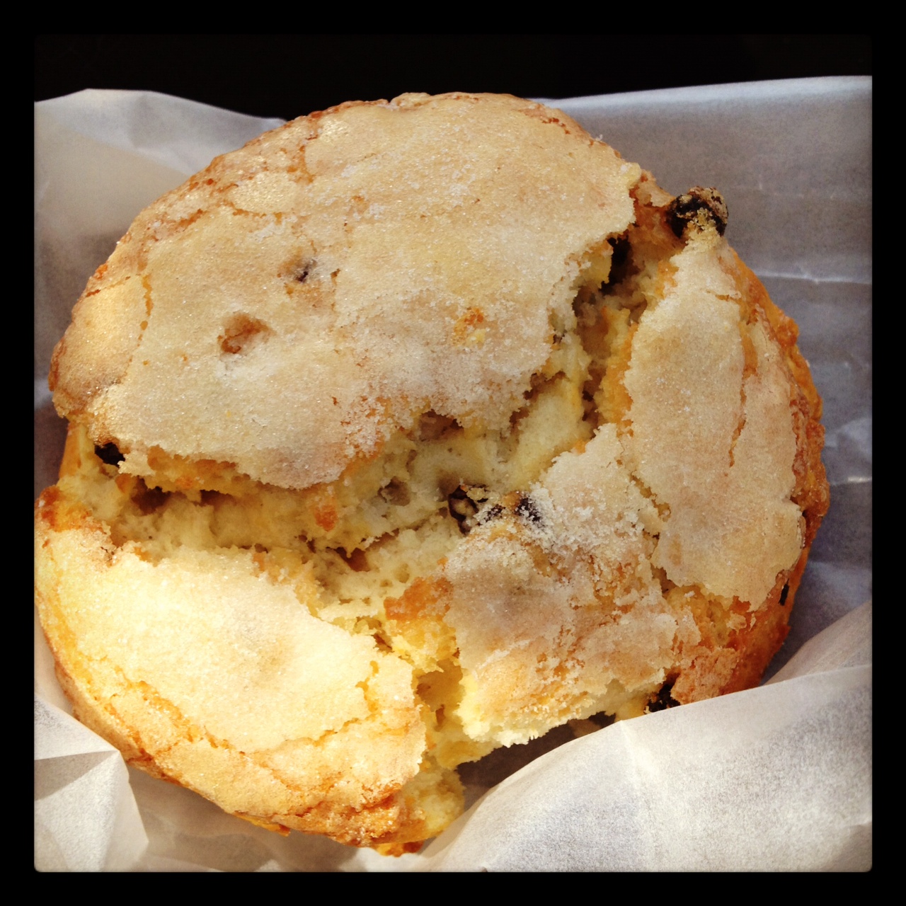 I can’t remember the last time I had something with currants in it. So, naturally when I saw this currant scone on the menu at Rustica I had to get it. If you don’t know, currants are a small berry fruit that is dark purple in color and very tasty.