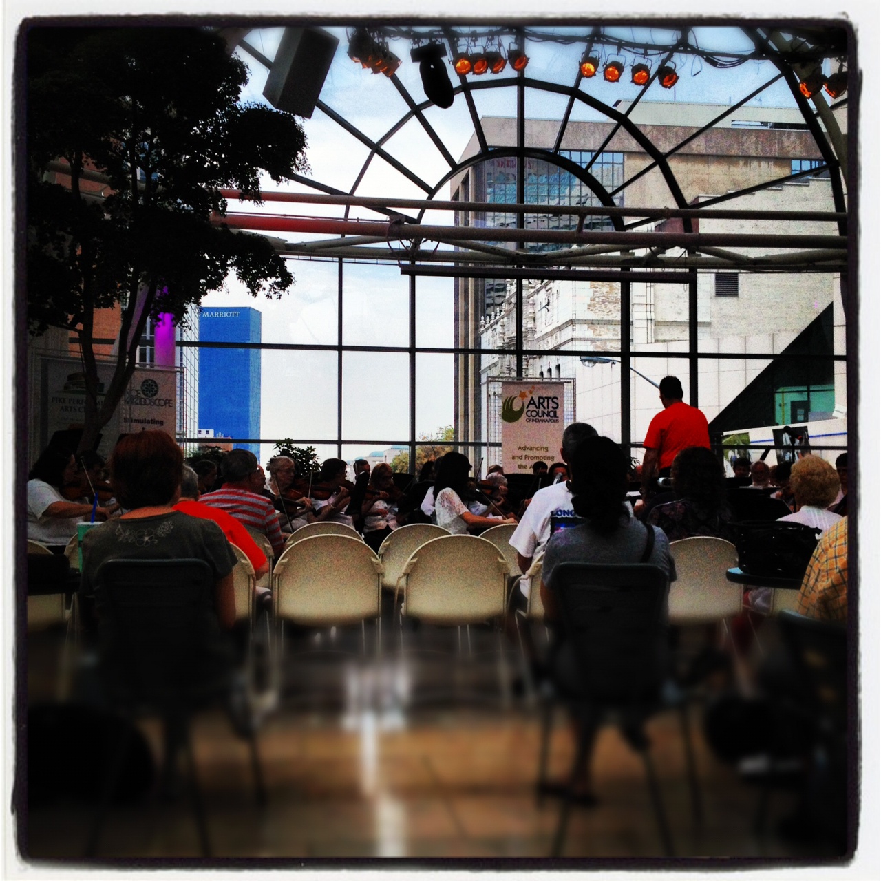After this trip to Zionsville we explored more of downtown Indianapolis. We saw this large glass structure when we were walking around before and wanted to see what it was. It was a garden/concert venue that spanned the area between the streets in downtown.